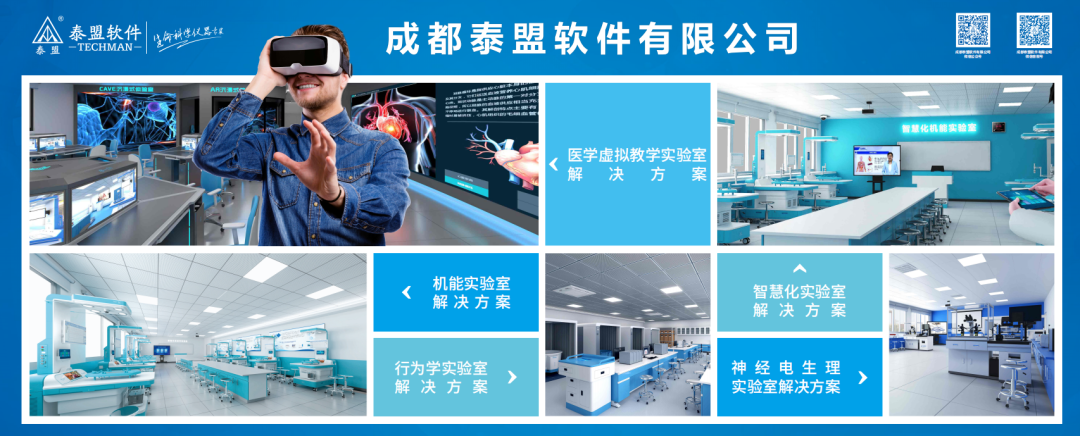 提供数字化实验教学平台和工具:成都泰盟开发了一系列数字化平台和工具,例如VMC-100医学虚拟仿真实验教学系统、XR扩展现实教学系统、VSP-100虚拟标准化病人系统、基于AR技术的心肺复苏急救系统等,帮助学校实现数字化转型。